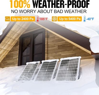 [Dayanıklı Yapı] Düşük demirli kalınlaştırılmış cam yüzeyi ve korozyona dayanıklı alüminyum çerçeve ile bu güneş paneli %100 su geçirmez ve pas geçirmez, bu da 25 yıla kadar uzun bir ömrü garanti eder..Kum fırtınaları, güçlü rüzgarlar, gök gürültüsü, kar fırtınaları ve dolu da dahil olmak üzere çeşitli zorlu hava koşullarına dayanacak şekilde tasarlanmıştır ve 2400Pa'ya kadar rüzgar basıncına ve 5400Pa'ya kadar kar yüklerine dayanabilir.