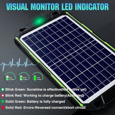 [Kapsamlı Koruma] Kapsamlı bir koruma önlemleri seti, pil aşırı şarjının, aşırı voltajın, boşaltmanın, kısa devreye girmenin, ters kutup korumasının önlenmesini içerir.ve IP65 su geçirmez ve kıvılcım geçirmez özellikleriMPPT şarj denetleyici olmadan sadece diyotları entegre eden şarj cihazlarına kıyasla,Aşırı şarjı önler ve pilde onarılamaz hasar vermez..