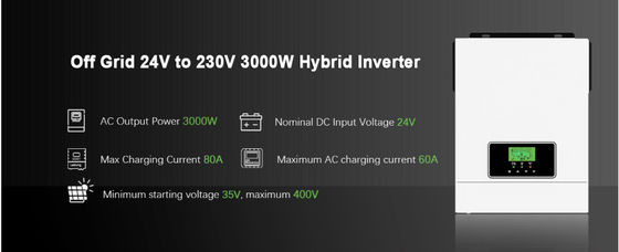 FT3000 Güneş hibrit Inverter 3200W 80A MPPT Güneş Şarj DenetleyicisiMax PV 3000W DC30-400V Giriş, 24V kurşun-asit/lityum pil için uygun
